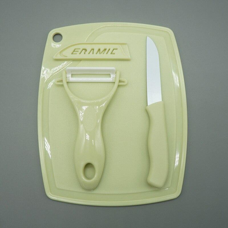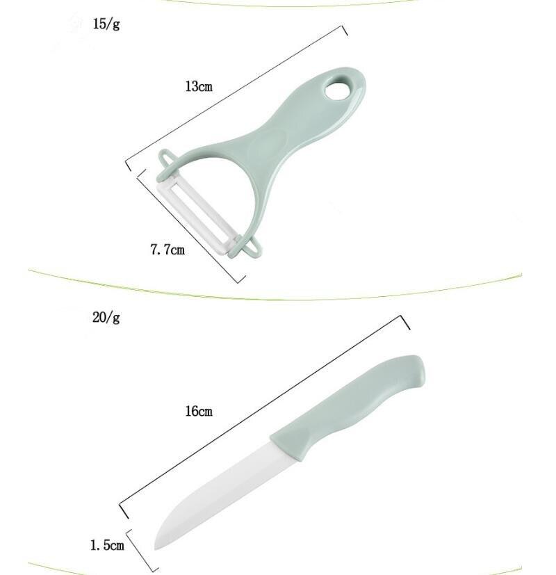 São 3 peças resistente para compor a sua cozinha, vem com a placa de corte de 19.5cm*15.5cm*, a faca de 16cm*1.5cm e o descascador de 13cm*7.7cm.