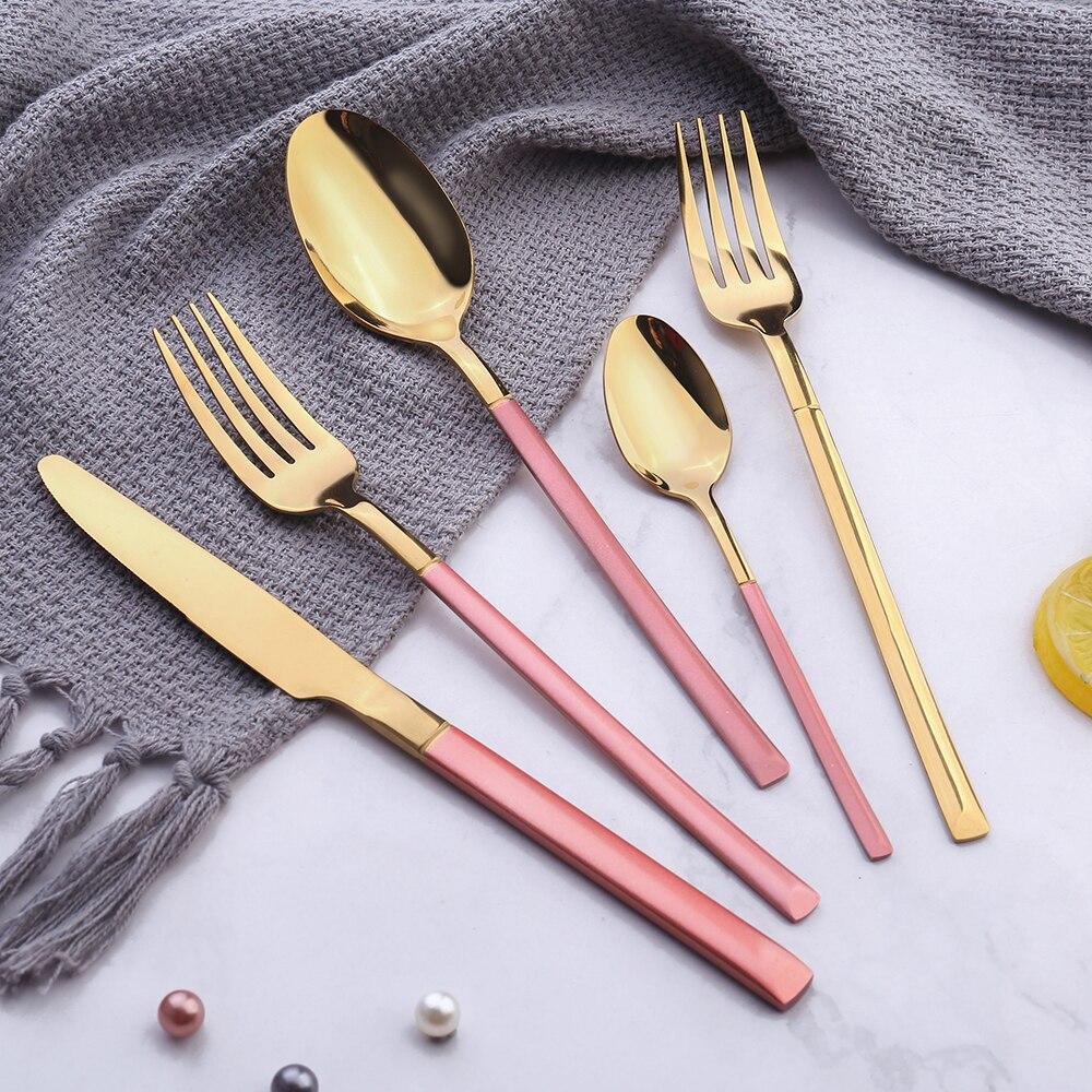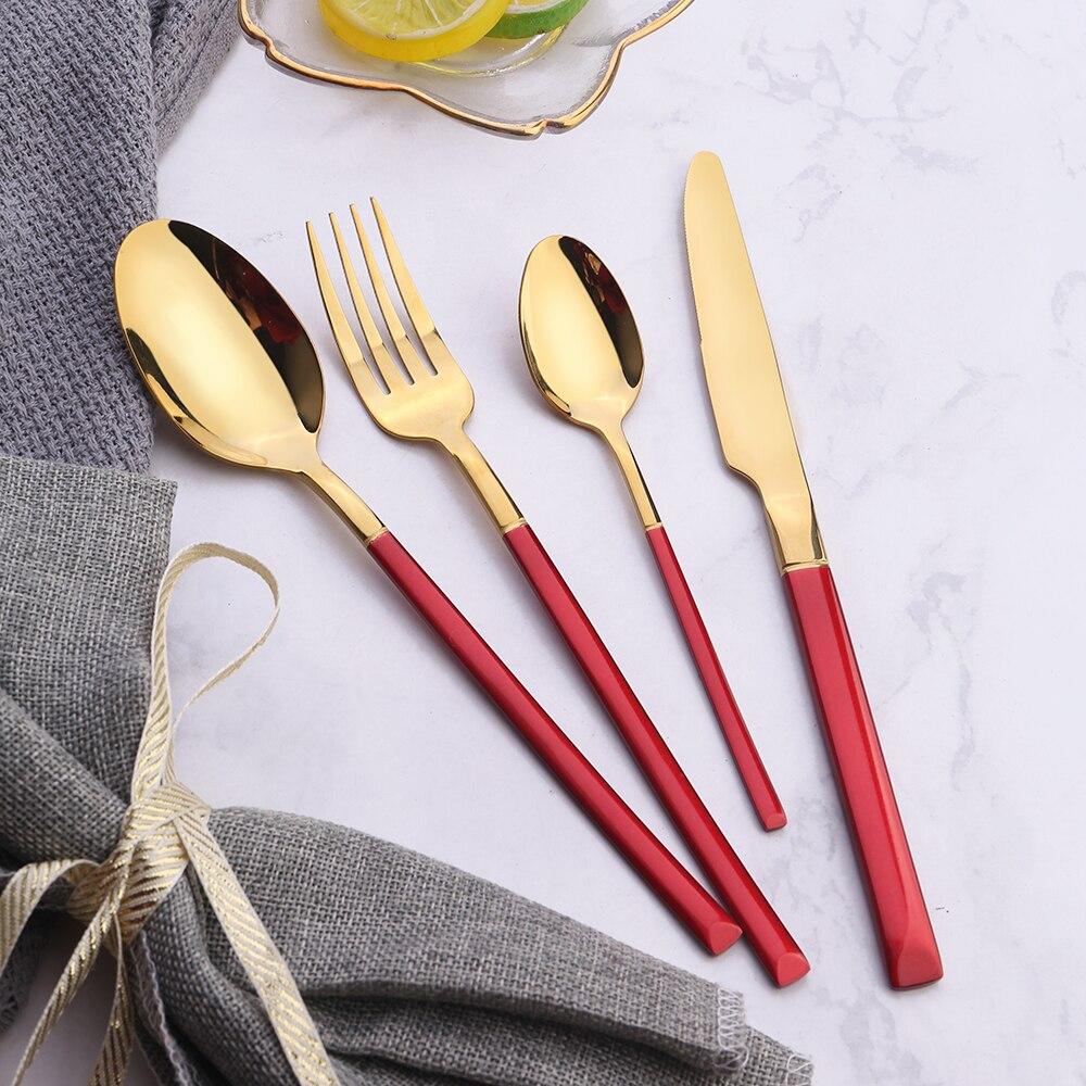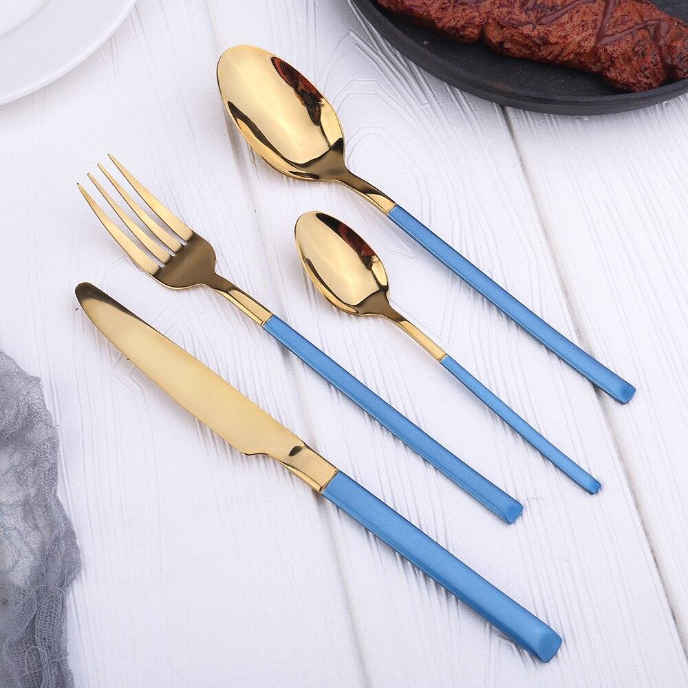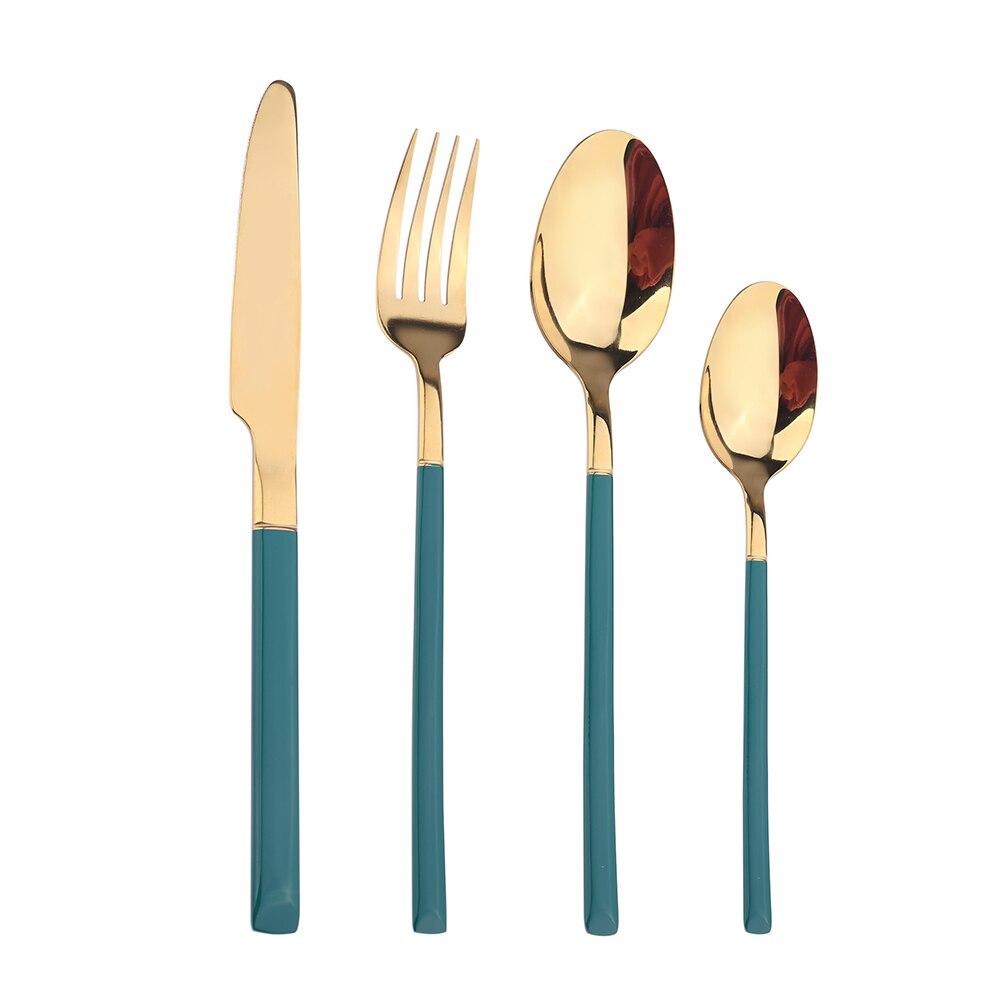 Totalmente 4 peças um conjunto, faca + colher + garfo + colher de chá