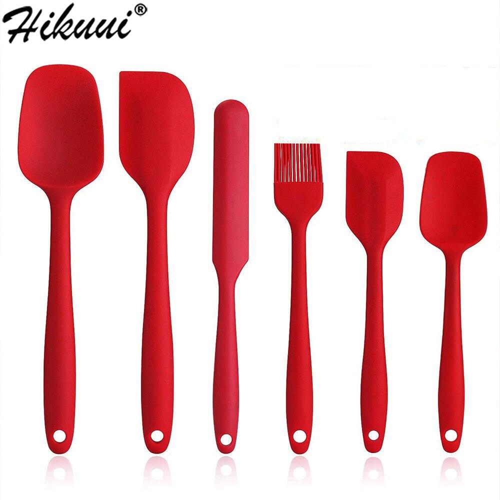 Nome do item: 6 peças espátula de silicone conjuntos Material: silicone (fda aprovado) Tamanho: como a imagem Cor: preto, vermelho Peso líquido: 360g