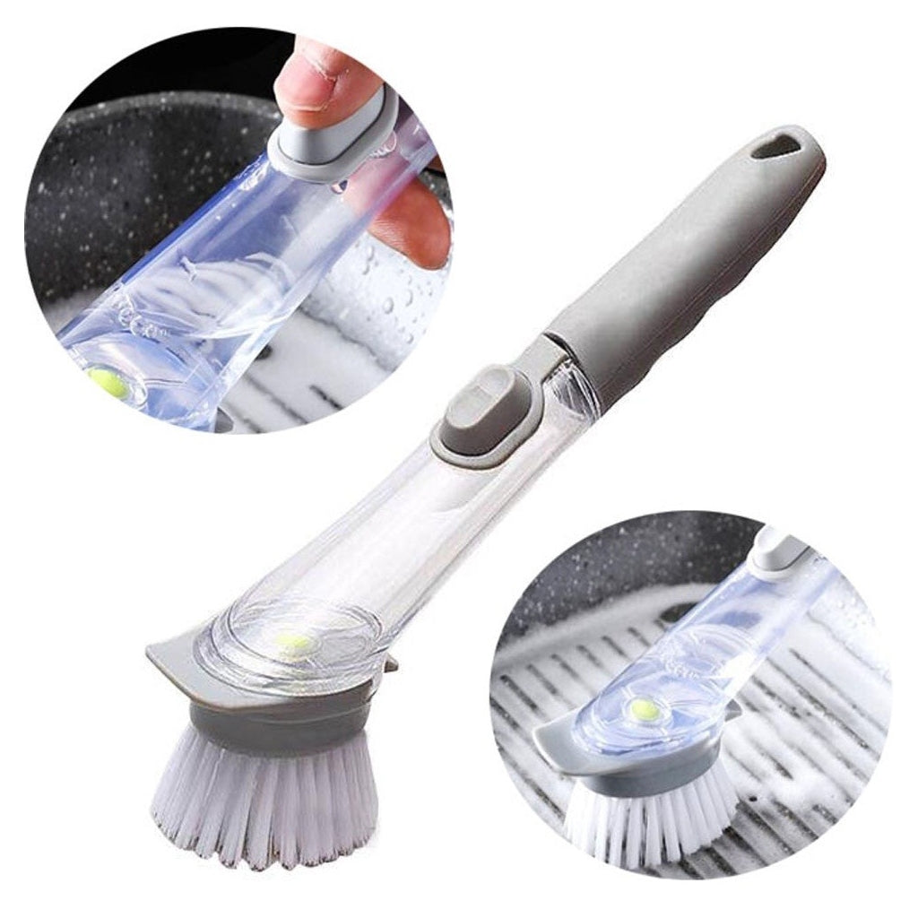 Escova com Dispensador 2 em 1Mantenha a sua pia organizada e a loiça impecável com este acessório prático. Combina esponja e escova, ideal para facilitar a limpeza diária, com um dispensador que adiciona o detergente diretamente durante a lavagem.Características:Design 2 em 1: esponja e escova intercambiáveis.Dispensador integrado para adicionar detergente automaticamente.Cabo ergonómico para maior conforto e controle.Escova resistente para remoção de sujidade difícil.Esponja macia que não risca superfícies delicadas.Fácil de recarregar e limpar.