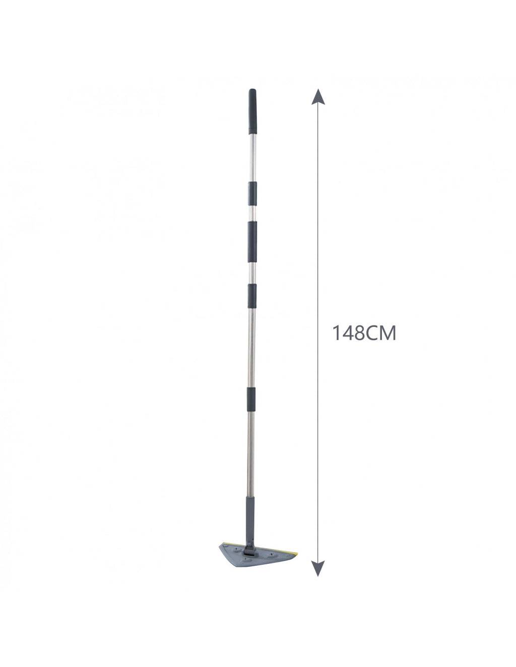Esfregonade Limpeza Telescópico com Pano Triangular e Raspador IntegradoEsta Esfregona telescópico é a solução perfeita para limpeza eficiente e prática de janelas, vidros e superfícies lisas. Com design triangular e raspador embutido, proporciona máxima eficácia em cantos e superfícies amplas.Características Principais:Design Triangular:Ideal para alcançar cantos e áreas de difícil acesso.Raspador Integrado:Remove eficazmente a sujidade mais difícil e marcas de água.Cabo Telescópico:Ajustável em comprimento para alcançar áreas altas sem esforço.Pano de Microfibra Lavável:Alta absorção e fácil de limpar, garantindo durabilidade.Leve e Ergonómico:Fácil de manusear, tornando a limpeza menos cansativa.Especificações Técnicas:Material: Aço inoxidável, plástico resistente e microfibra.Comprimento ajustável: 60 cm a 120 cm.Tamanho do pano: 24 cm (base triangular).Cor: Branco e cinza.Peso: 450 g.