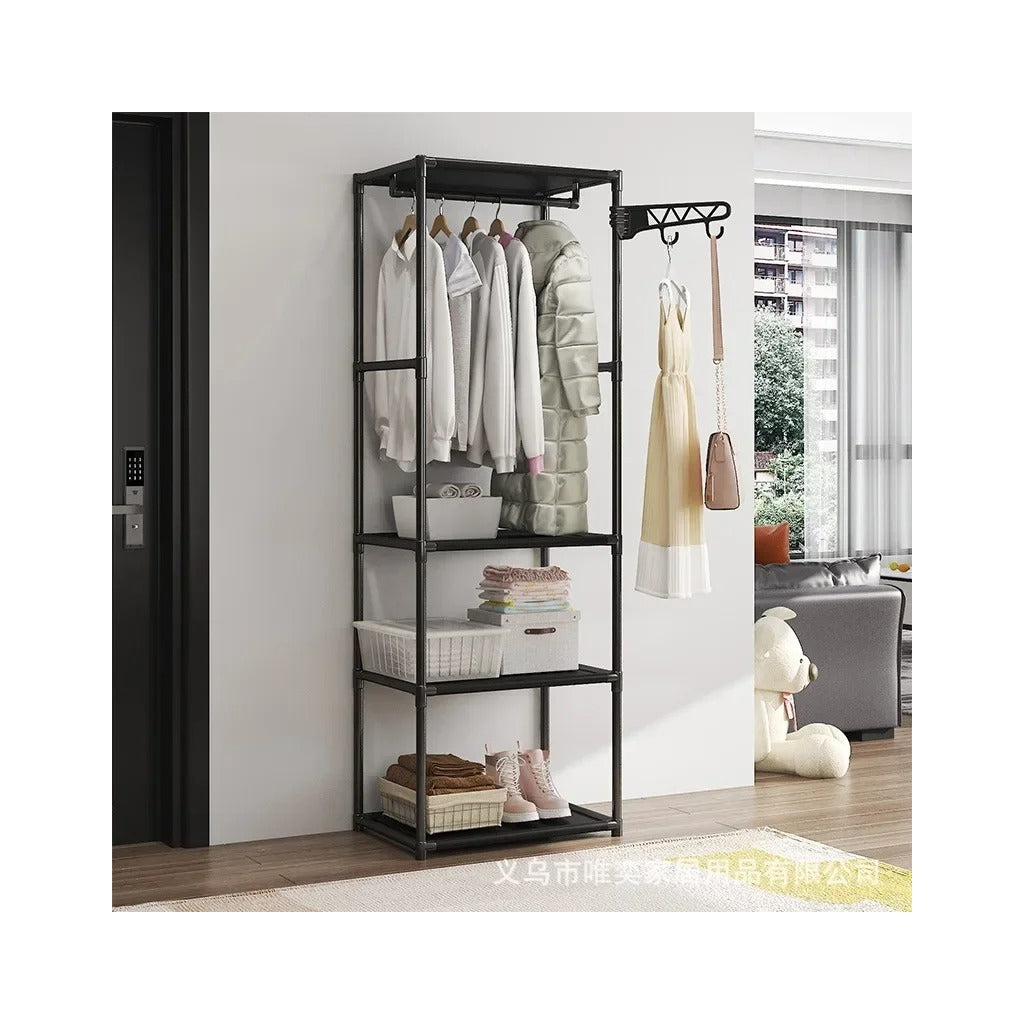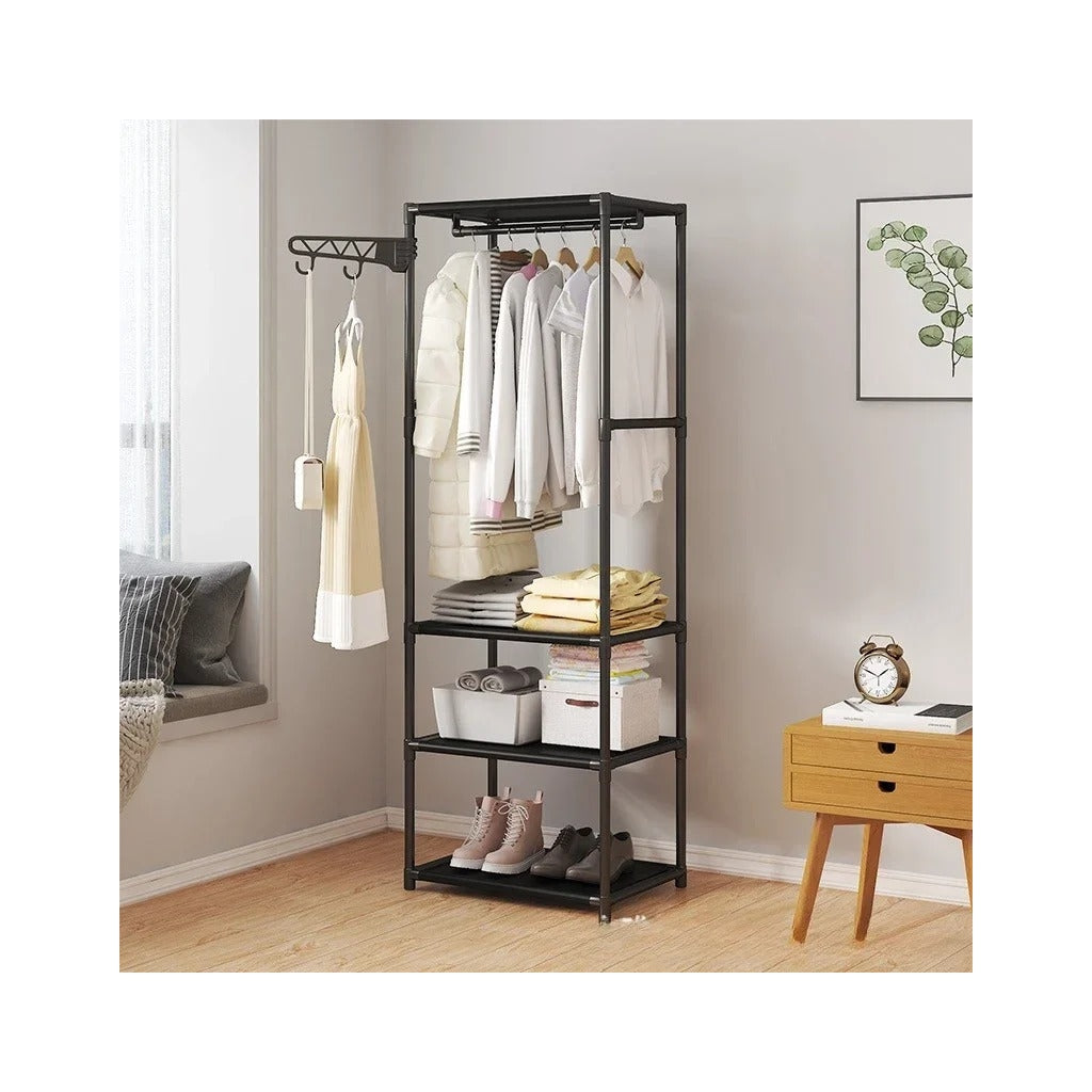 Organizador de Roupas com Prateleiras e Suporte Lateral para AcessóriosOtimize a organização do seu espaço com este elegante e funcional organizador de roupas. Com estrutura robusta, inclui um varão para pendurar roupas, prateleiras espaçosas para acessórios, sapatos ou roupas dobradas e um suporte lateral para chapéus ou bolsas. Perfeito para quartos, closets ou entradas, combina praticidade e estilo numa solução compacta.Características:Estrutura resistente: Fabricada com materiais de alta qualidade, garantindo durabilidade e estabilidade.Varão para roupas: Ideal para pendurar casacos, vestidos e camisas de forma organizada.Prateleiras amplas: Oferecem espaço adicional para organizar sapatos, caixas, toalhas ou roupas dobradas.Suporte lateral multifuncional: Perfeito para chapéus, bolsas ou outros acessórios.Design moderno e compacto: Combina funcionalidade e elegância, adaptando-se a diferentes ambientes.Fácil de montar: Inclui instruções claras para uma montagem prática e rápida.