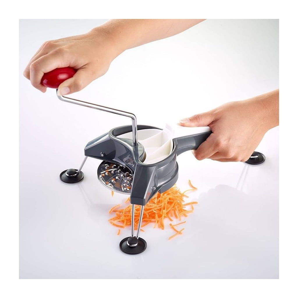 Ralador Manual Multifuncional com ManivelaFacilite as suas tarefas na cozinha com o Ralador Manual Multifuncional. Ideal para ralar, fatiar e triturar alimentos como legumes, queijos, frutas e muito mais. Uma ferramenta indispensável para preparar refeições de forma rápida e prática.Características principais:Manivela ergonómica:Oferece maior conforto e facilidade no uso.Lâminas de aço inoxidável:Altamente afiadas para cortes precisos e duradouros.Base com ventosas:Garante estabilidade durante o uso, evitando acidentes.Multifuncional:Perfeito para ralar, fatiar e triturar uma variedade de alimentos.Design compacto:Fácil de armazenar e limpar.Especificações técnicas:Material: Plástico ABS e aço inoxidável.Dimensões: 25 x 15 x 12 cm.Peso: 800 g.Inclui diferentes discos para cortes variados.