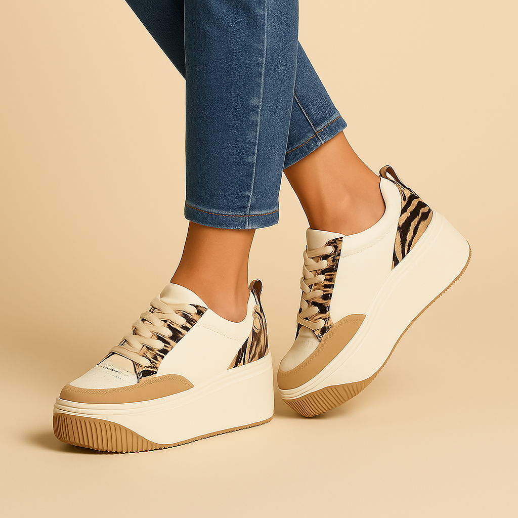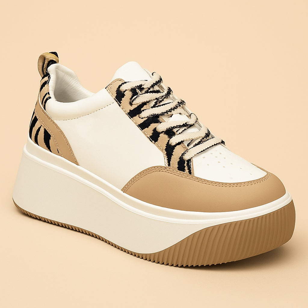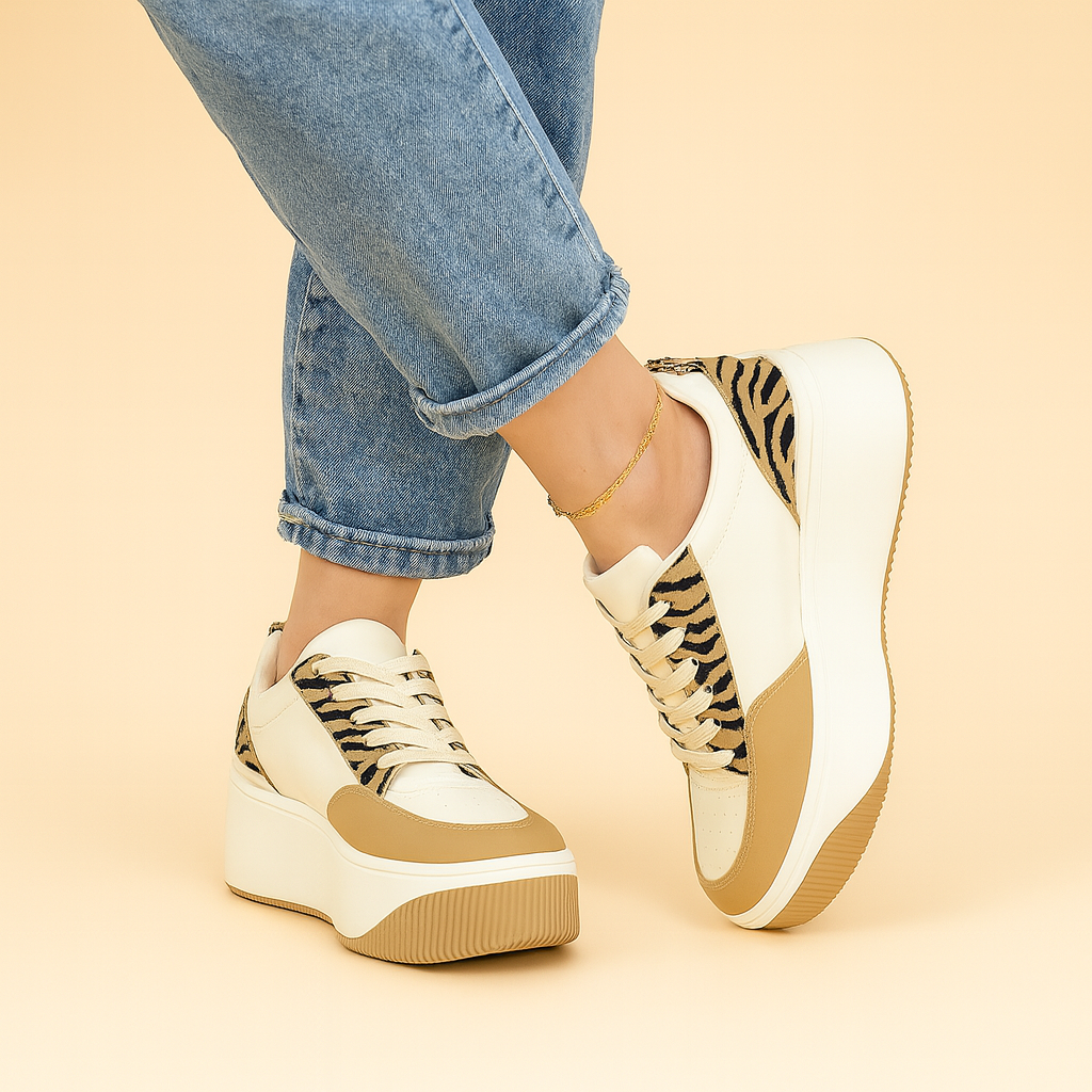 Prepara-te para a Sapatilha Zebra, o par que vai elevar o teu look a um novo nível. Com um design arrojado e um padrão de zebra, esta sapatilha de plataforma é a peça que faltava para quem não tem medo de se destacar na multidão.