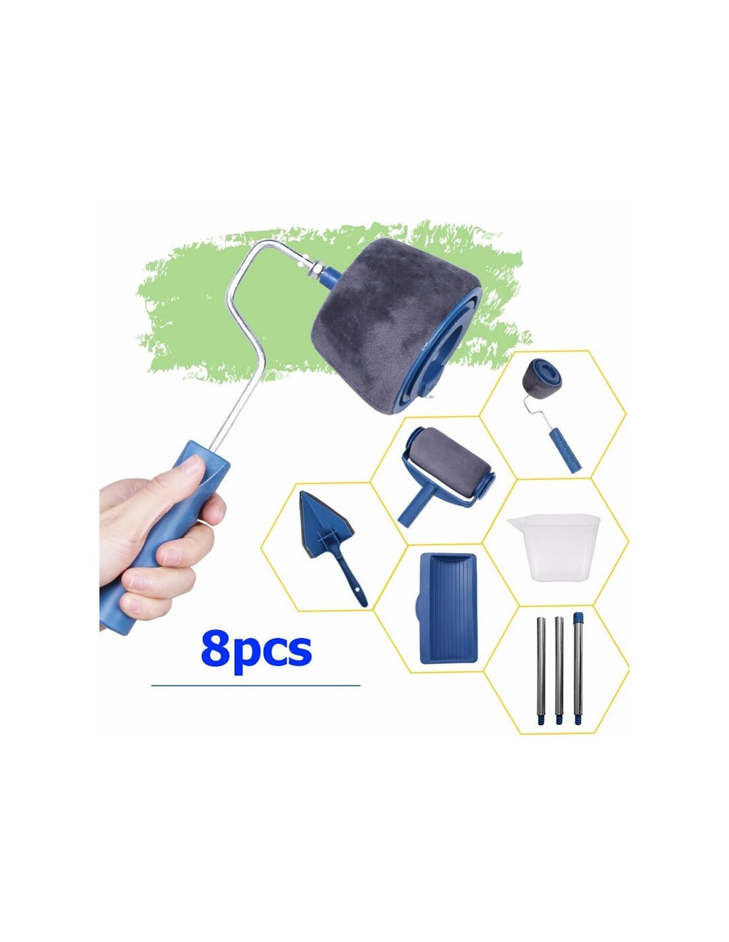 Kit de Rolo de Pintura Multifuncional com ReservatórioRenove facilmente a decoração da sua casa com o Kit de Rolo de Pintura Multifuncional. Este conjunto prático é perfeito para pintar paredes, tetos e até áreas de difícil acesso, garantindo uma aplicação uniforme e sem desperdício de tinta.Características Principais:Reservatório Integrado:O rolo principal possui um reservatório que dispensa a necessidade de mergulhar constantemente o rolo em tinta, facilitando a aplicação e reduzindo o desperdício.Acessórios Completos:Inclui rolo principal, rolo de precisão para cantos e bordas, escova angular para áreas estreitas, jarro medidor e hastes extensíveis.Fácil de Usar:Encha o reservatório com a tinta da sua escolha, feche a tampa e comece a pintar. Ideal para iniciantes e profissionais.Acabamento Suave:O tecido do rolo proporciona uma aplicação uniforme, garantindo uma cobertura perfeita em cada passada.Vantagens:Pintura rápida e sem complicações.Adequado para superfícies lisas e texturizadas.Reduz salpicos e respingos de tinta.Fácil de limpar e reutilizar.Especificações Técnicas:Material:Plástico ABS, metal e tecido de microfibra.Capacidade do reservatório:Aproximadamente 700 ml.Cor:Azul e cinza.Comprimento das hastes extensíveis:70 cm (montadas).Itens Incluídos:1 rolo com reservatório1 rolo pequeno para detalhes1 escova angular3 hastes extensíveis1 jarro medidor
