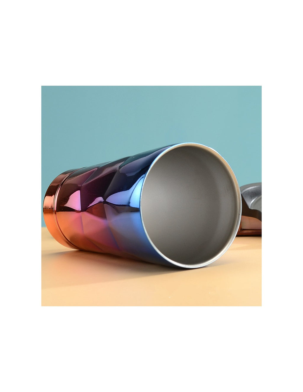 Copo Térmico com Design Metalizado e Tampa ReutilizávelEste copo térmico destaca-se pelo seu design inovador e acabamento metalizado em cores vibrantes, perfeito para adicionar estilo ao seu dia-a-dia enquanto mantém as suas bebidas na temperatura ideal.Características Principais:Acabamento Moderno:Superfície metalizada com efeito degradê que proporciona um visual sofisticado.Isolamento Térmico:Mantém as bebidas quentes por até 6 horas e frias por até 12 horas.Material de Alta Qualidade:Fabricado em aço inoxidável durável, garantindo longa vida útil.Tampa à Prova de Vazamentos:Com sistema de vedação eficiente, ideal para transporte sem preocupações.Capacidade Versátil:Adequado para café, chá, sumos ou outras bebidas, com capacidade generosa.Fácil de Limpar:Interior liso que não retém odores ou manchas.Especificações Técnicas:Material:Aço inoxidável com tampa em plástico de alta qualidadeCapacidade:500mlDimensões:Altura de 20 cm e diâmetro de 7 cmPeso:320gCores Disponíveis:Verde, dourado e lilás com efeito metalizadoTipo de Tampa:Flip-top com mecanismo de fecho seguro