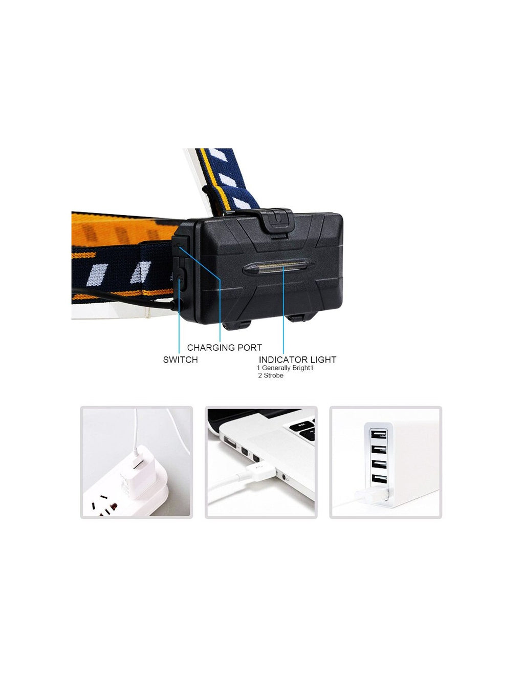 Lanterna Frontal LED Recarregável com Ajuste de IntensidadePerfeita para actividades ao ar livre, a lanterna frontal LED recarregável oferece uma iluminação poderosa e versátil. Seja para caminhadas noturnas, acampamentos ou trabalho em locais escuros, esta lanterna combina conforto e eficiência.Vantagens do ProdutoIluminação Ultra Brilhante: Equipado com LEDs de alta potência para máxima visibilidade.Ajuste de Intensidade: Diferentes modos de luz para adaptar-se a várias situações.Conforto e Ajustabilidade: Fita elástica ajustável para um encaixe perfeito.Resistência à Água: Ideal para todas as condições climáticas.Bateria Recarregável: Inclui cabo USB para carregamento fácil e rápido.Especificações TécnicasMaterial: Plástico ABS e liga de alumínio.Fonte de Luz: LEDs de alta intensidade.Modos de Iluminação: Alto, médio, baixo, e piscar.Alimentação: Bateria recarregável (incluída).Peso: Leve e portátil.Cor: Preto com detalhes em laranja.