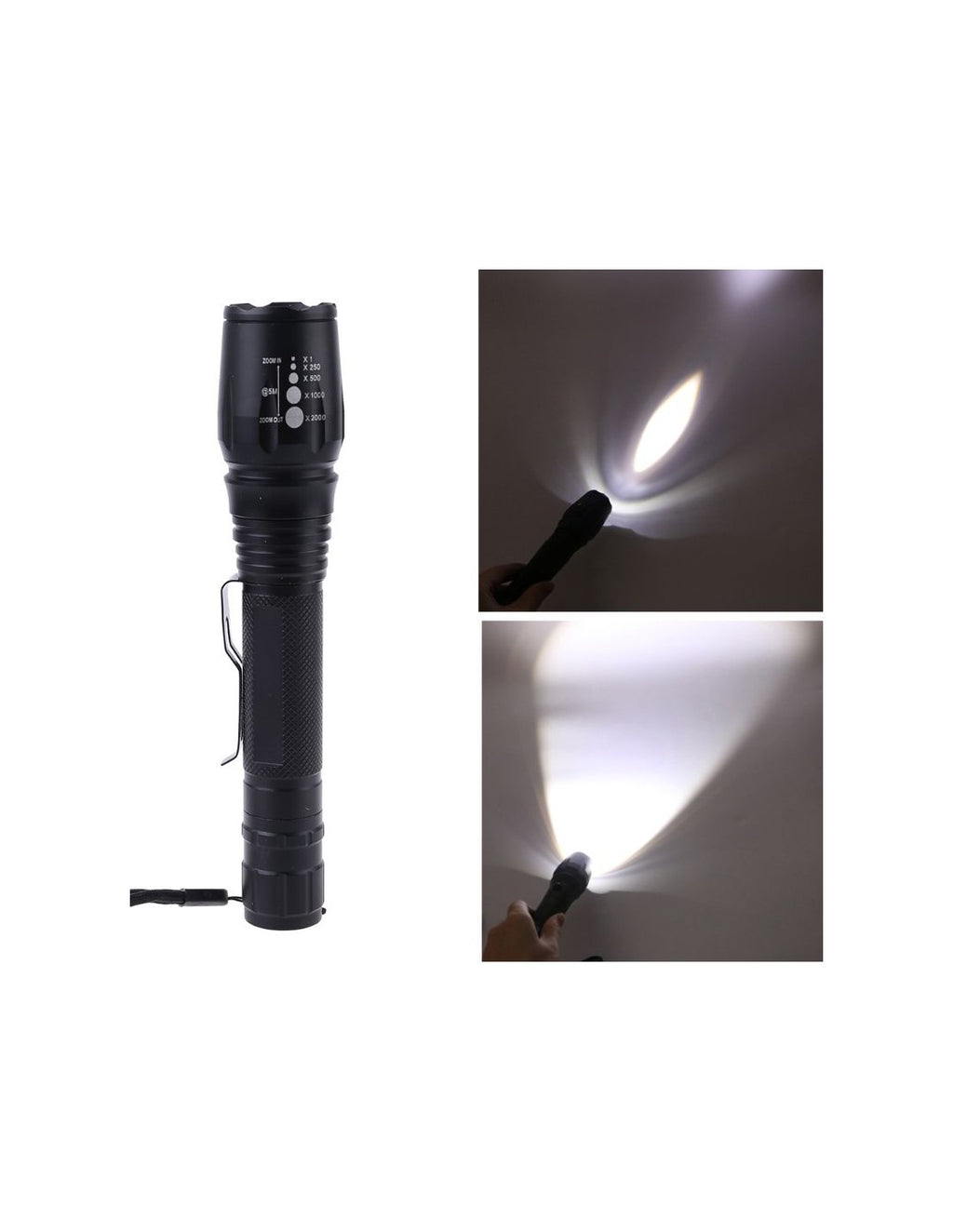 Lanterna Tática LED com Zoom AjustávelEsta lanterna tática LED de alto desempenho é ideal para situações de emergência, atividades ao ar livre ou uso diário. Compacta e resistente, proporciona iluminação potente e versatilidade com diferentes modos de luz e zoom ajustável.Características Principais:Luz LED Ultra-brilhante:Ilumina grandes distâncias com clareza.Zoom Ajustável:Ajuste o foco para alcance curto ou longo.5 Modos de Iluminação:Alto, médio, baixo, strobo e SOS.Resistente à Água:Perfeita para aventuras ao ar livre.Design Compacto:Fácil de transportar e armazenar.Especificações Técnicas:Material: Liga de alumínioFonte de luz: LED Cree T6Modos: 5 (Alto, Médio, Baixo, Strobo, SOS)Tensão: 3.7VBateria: Recarregável via USBDimensões: 13 cm x 3.5 cmPeso: 150g