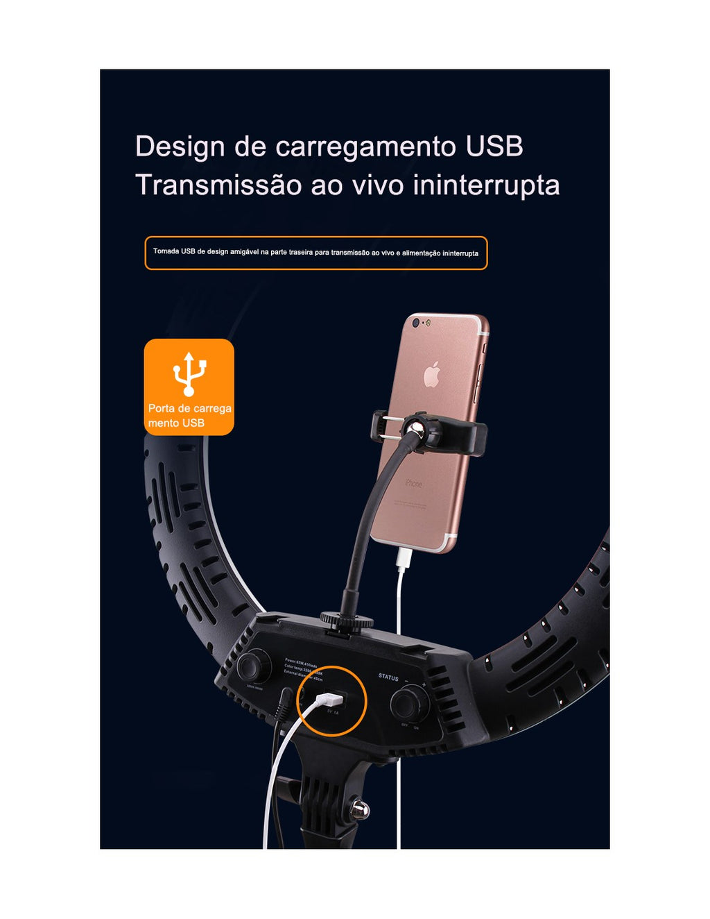Ring Light RGB LED 33cm QA-666Ilumine as suas fotos e vídeos com o Ring Light RGB LED 13" QA-666. Perfeito para criadores de conteúdo, maquilhadores e fotografias profissionais, oferece uma iluminação suave e ajustável para realçar cada detalhe.Características Principais:Iluminação RGB Multicolorida:Escolha entre várias cores e intensidades para o ambiente ideal.Diâmetro de 13 polegadas:Cobertura ampla e iluminação uniforme.360° de Rotação:Permite ajustar o ângulo da luz conforme necessário.Controlo Remoto:Alterne facilmente entre modos e ajuste a intensidade da luz.Suporte para Telemóvel:Ideal para gravações e selfies estáveis.Especificações Técnicas:Modelo: QA-666Diâmetro: 13 polegadasModos de Luz: RGB e Branco SuaveAlimentação: USBCompatibilidade: Universal para telemóveis e câmaras