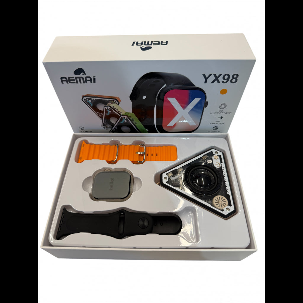 Smartwatch AEMAI YX98 com Coluna Bluetooth – Ecrã 2.2", Carregamento Sem Fios e Som Hi-FiDescobre o equilíbrio perfeito entre tecnologia, estilo e entretenimento com o smartwatch AEMAI YX98. Com ecrã generoso de 2.2", ligação Bluetooth 5.3 de alta estabilidade e carregamento sem fios, este relógio inteligente destaca-se pelo seu design moderno e funcionalidades topo de gama.Inclui uma coluna Bluetooth triangular de alta qualidade com som CD Grade, perfeita para ouvir música onde estiveres. A ligação Bluetooth tem alcance de até 10 metros, permitindo emparelhamento rápido com o smartphone. O YX98 vem ainda com duas braceletes incluídas para personalizares o teu estilo.Por que vai adorar este modelo:• Ecrã de 2.2" com interface intuitiva e moderna• Chip Bluetooth 5.3 com emparelhamento rápido e estável• Alcance de conexão até 10 metros• Carregamento wireless – prático e sem cabos• Coluna triangular Bluetooth incluída com som de alta fidelidade